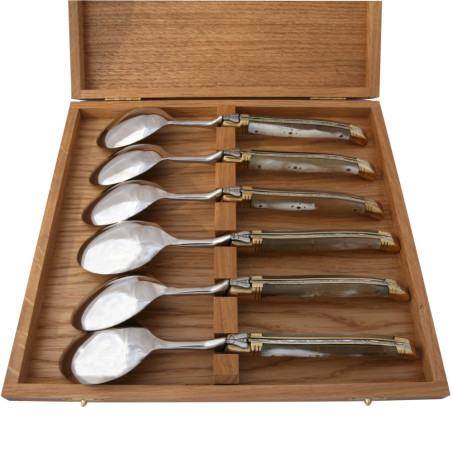 Discover our Laguiole spoons handmade in France, a symbol of French elegance and conviviality. Available in wood, horn, stainless steel, or modern materials, they perfectly complement your Laguiole knives and forks to create a refined and harmonious table setting.