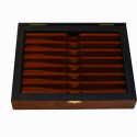 Empty box for 7 days straight razors set or collection, in elm burl and leather, with leather razor display and protection pad