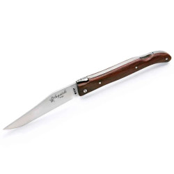 To hold the knife, there's a 10.5 cm long handle made from rosewood. Its natural deep red colour adds a sublime touch to the tool. With this type of precious wood, the strength and durability of the knife are 100% guaranteed. Corrosion and breakage are not part of its vocabulary. When it comes to design, the emphasis is on class and elegance.