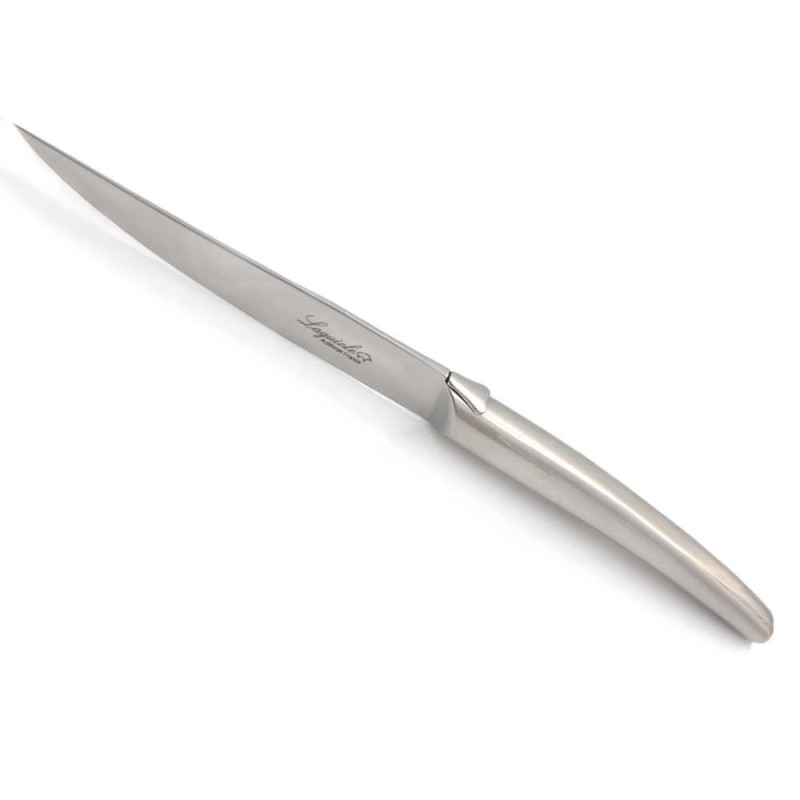 Both blade and handle are made of a single piece of stainless steel, with this design, nothing can separate them and their solidity is without equal. This set is an ideal gift for friends who know how to treat their guests. Whether they be Sunday masterchefs, Michelin-starred chefs or just very generous hosts, these steak knives will certainly delight them.
