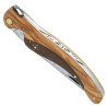 Comme tous couteaux au manche en bois, vous éviterez soigneusement l’immersion du manche dans de l’eau, quelqu’en soit sa température. Il suffit de frotter un linge humide sur le manche pour lui ôter sa salissure.