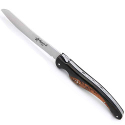 Le manche a été façonné en forme d’oiseau. Les lames des couteaux ont subi une opération d'émouture, qui caractérise les très beaux couteaux. Elle a pour but de donner un tranchant idéal à la lame, tant en épaisseur qu'en régularité.