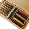 A l’intérieur, les 6 couteaux steak assortis divulguent chacun un coloris élégant et esthétique. S’ils ont pour point commun une lame en acier inoxydable, les manches, quant à eux, sont conçus en différentes essences. 6 couteaux pour 6 bois nobles : l’olivier, le buis, l’ébène, le palissandre, le bois de rose et l’amourette. Chaque couteau est une révélation unique aussi bien au niveau du design que du coloris. Ces bois ont été également sélectionnés pour leur résistance et leur performance.