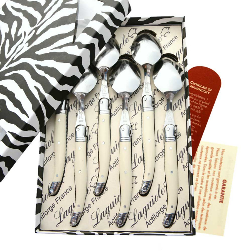 Coffret de  6 cuillères à soupe laguiole ABS de couleur blanche