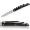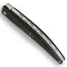 Pour ce couteau laguiole aux lignes uniques, le noir profond du bois d’ébène se marie parfaitement avec la mitre en laiton massif.